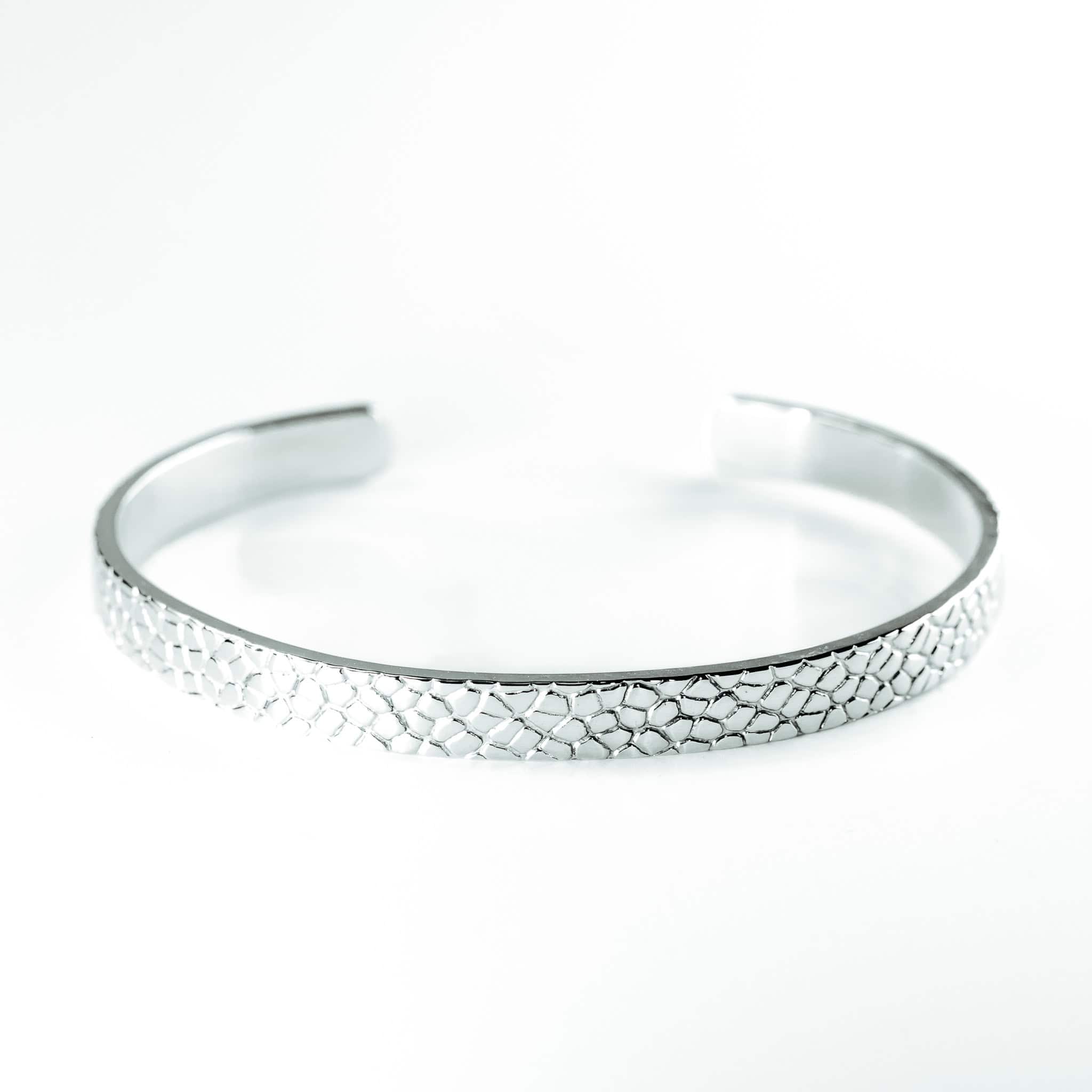 Using traditional techniques, this cuff starts off as a single strip of 925 silver, it is formed, rolled and manipulated into a textured cuff.