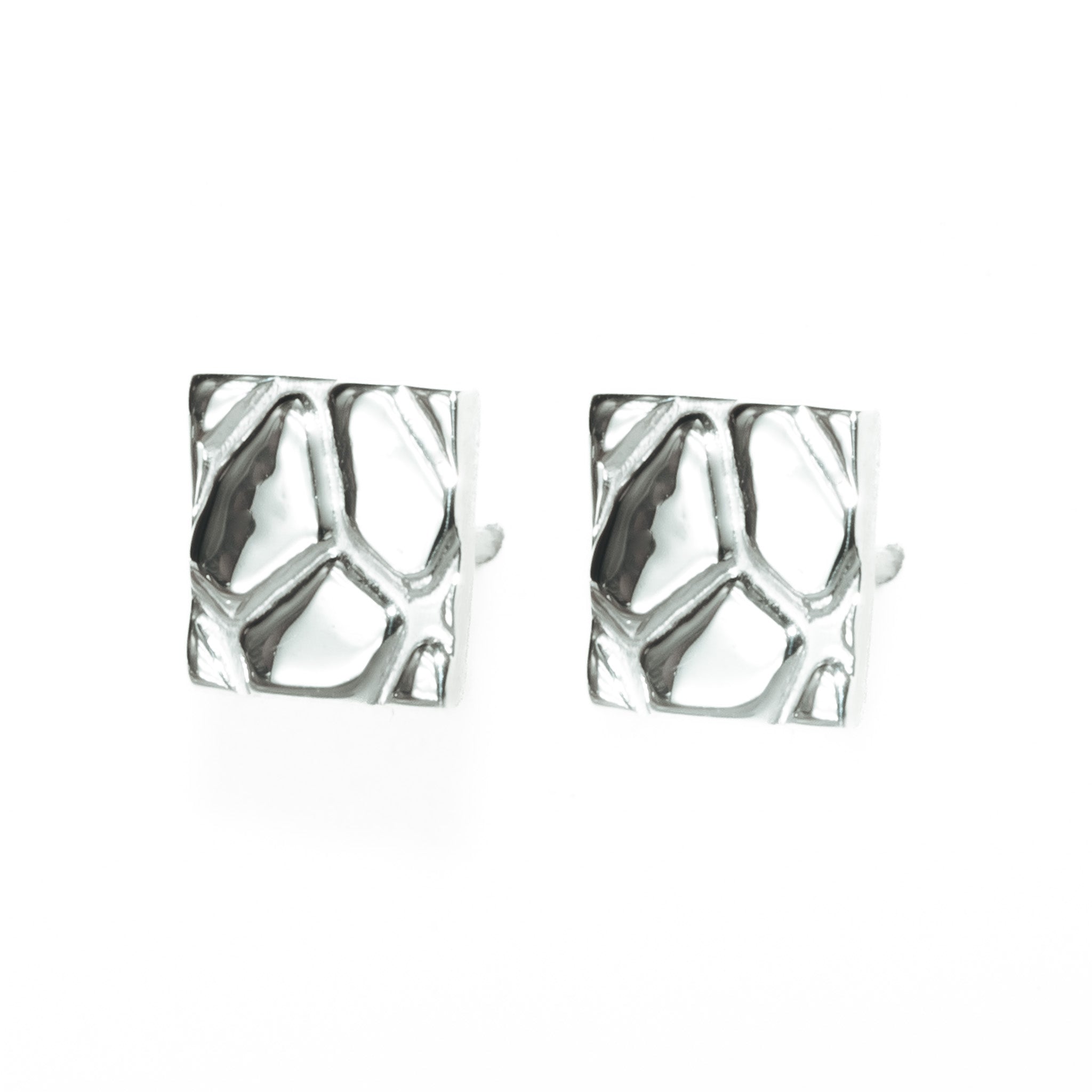 The Crocodile Skin Square Stud Earrings are solid 925 silver studs finished with a distinctive textured surface inspired by luxury leather goods. Compact and purposeful in form, the square silhouette gives structure while the tactile finish adds depth and character. Handmade from start to finish in our UK workshop, these studs are designed to be worn daily and noticed up close.