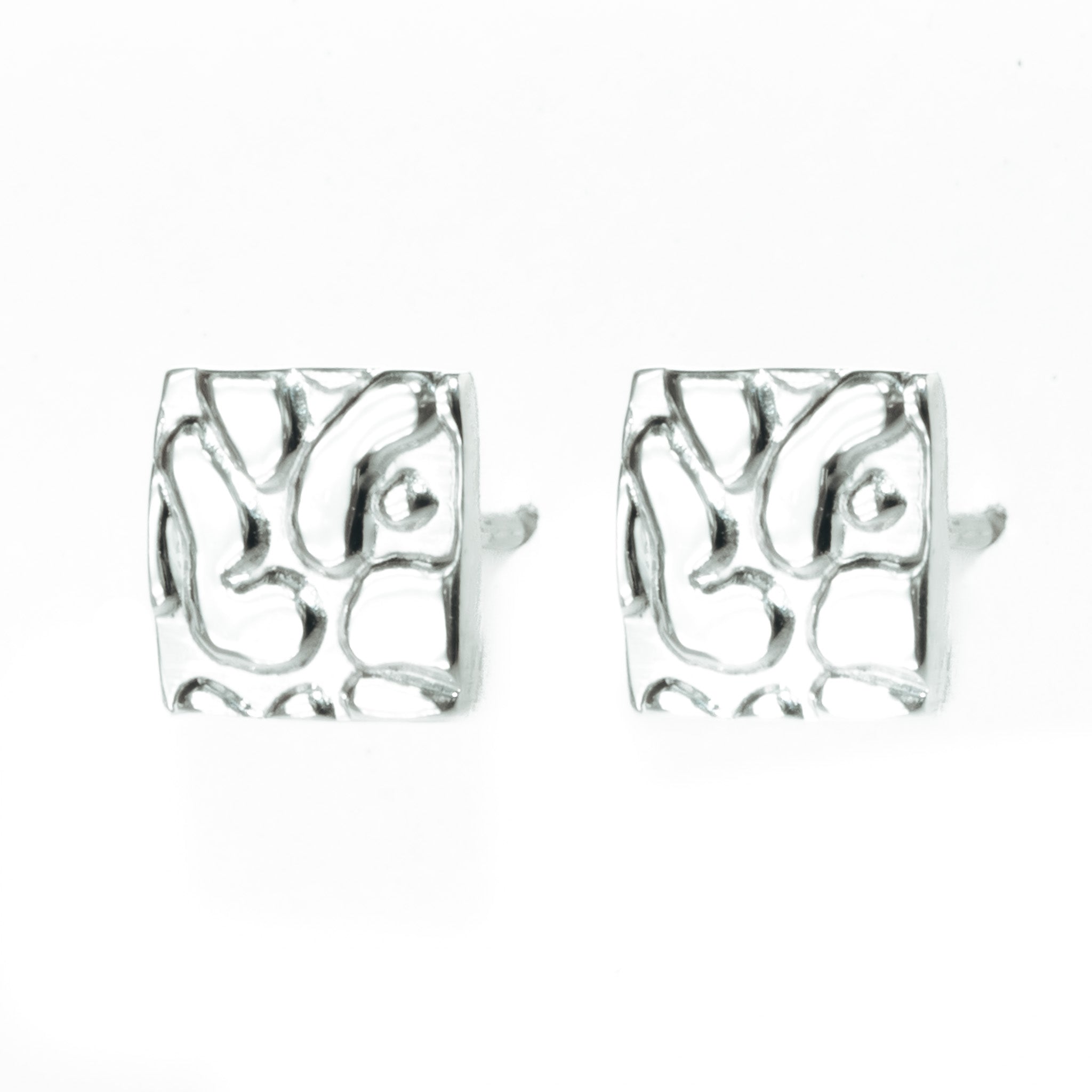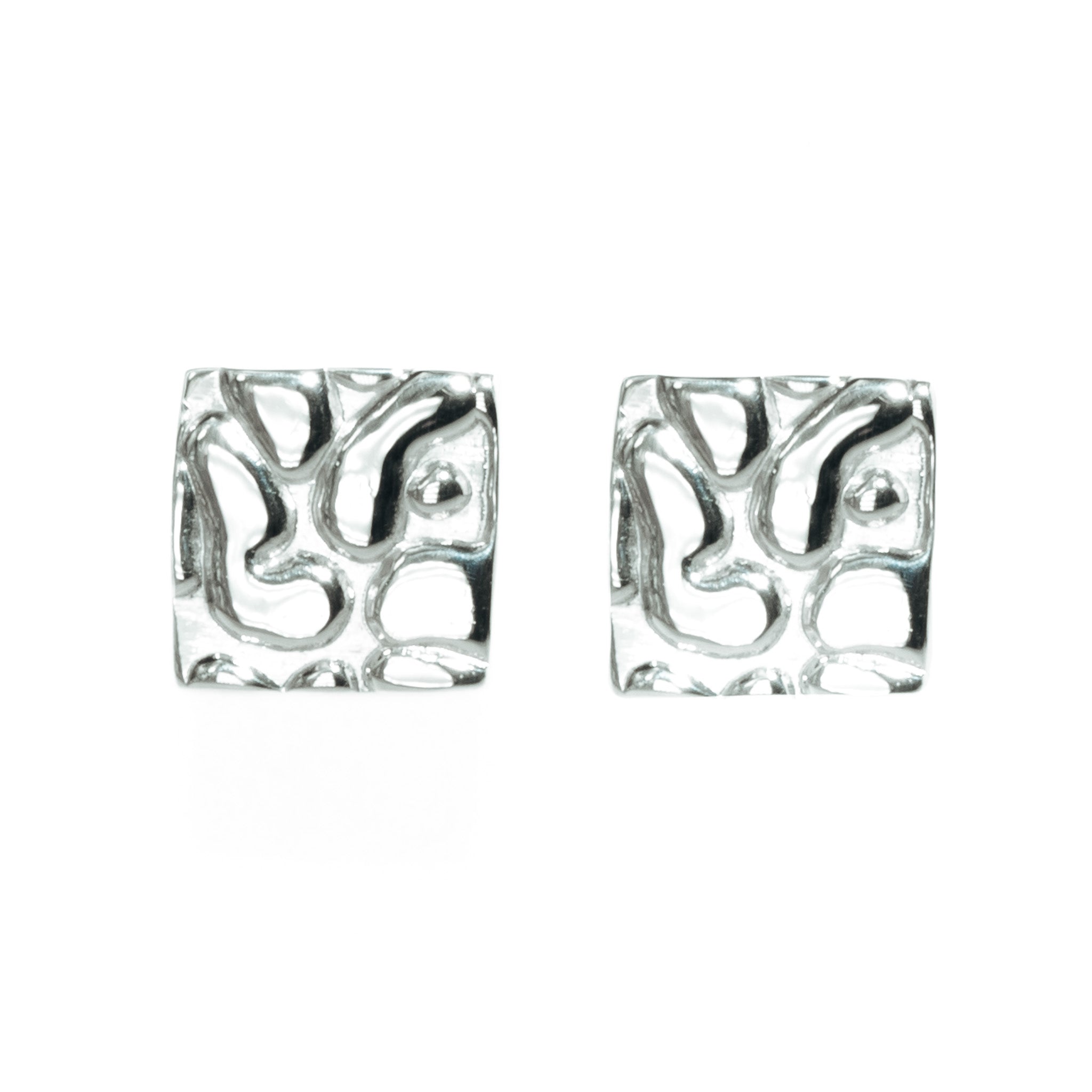 The Leopard Skin Square Stud Earrings are solid 925 silver studs finished with a distinctive textured surface inspired by luxury leather goods. Compact and purposeful in form, the square silhouette gives structure while the tactile finish adds depth and character. Handmade from start to finish in our UK workshop, these studs are designed to be worn daily and noticed up close.