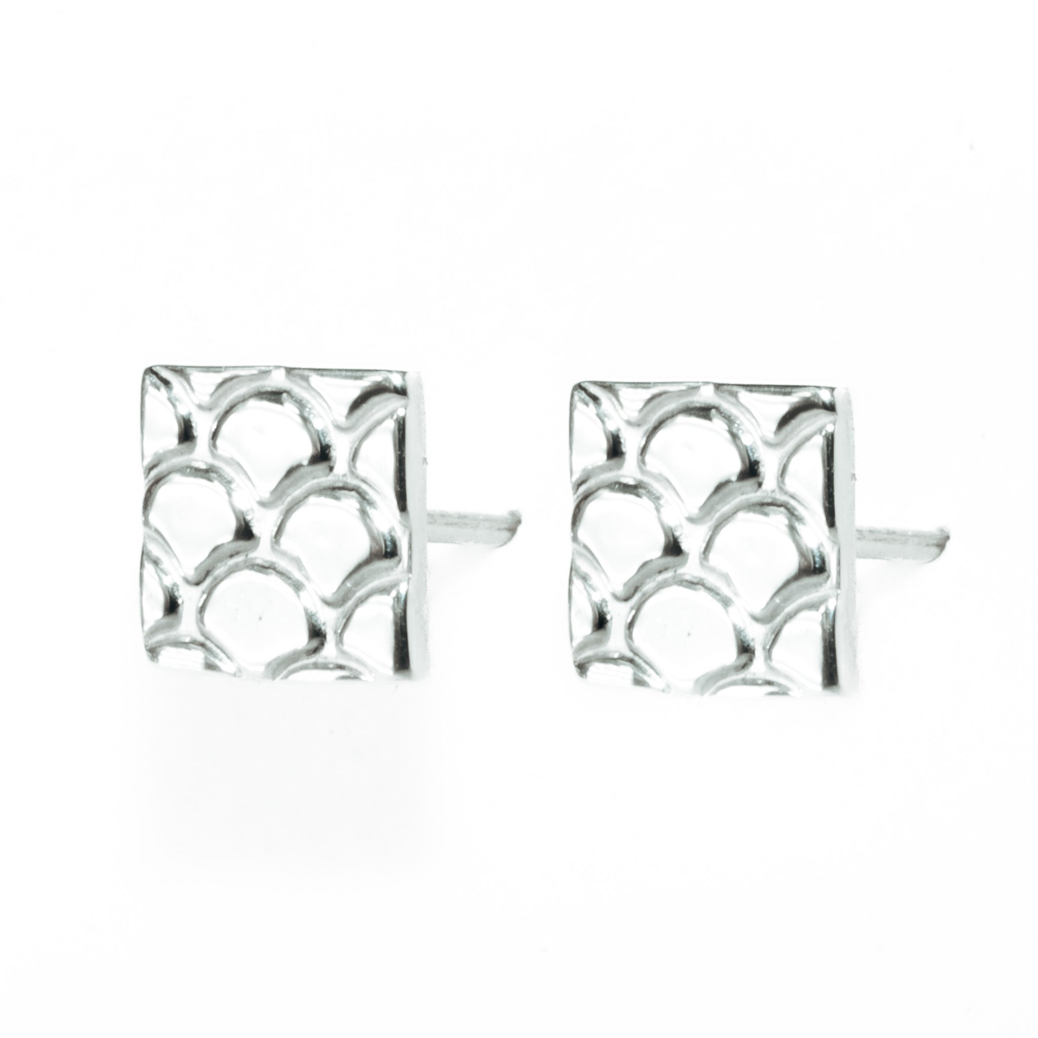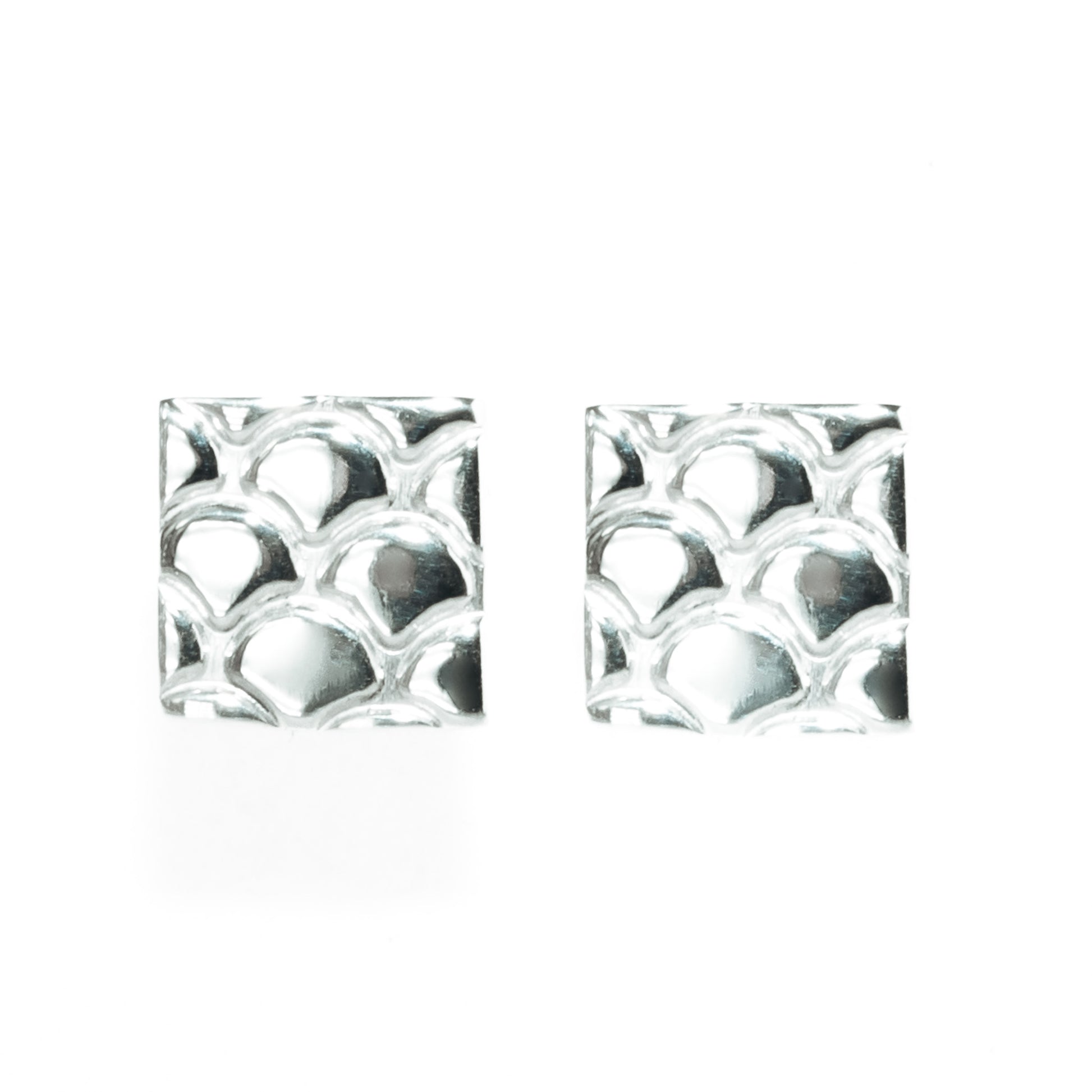 The Snake Skin Square Stud Earrings are solid 925 silver studs finished with a distinctive textured surface inspired by luxury leather goods. Compact and purposeful in form, the square silhouette gives structure while the tactile finish adds depth and character. Handmade from start to finish in our UK workshop, these studs are designed to be worn daily and noticed up close.