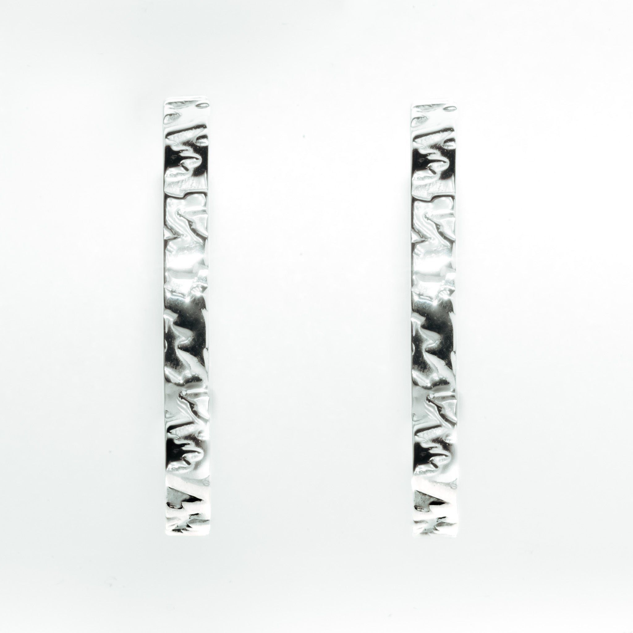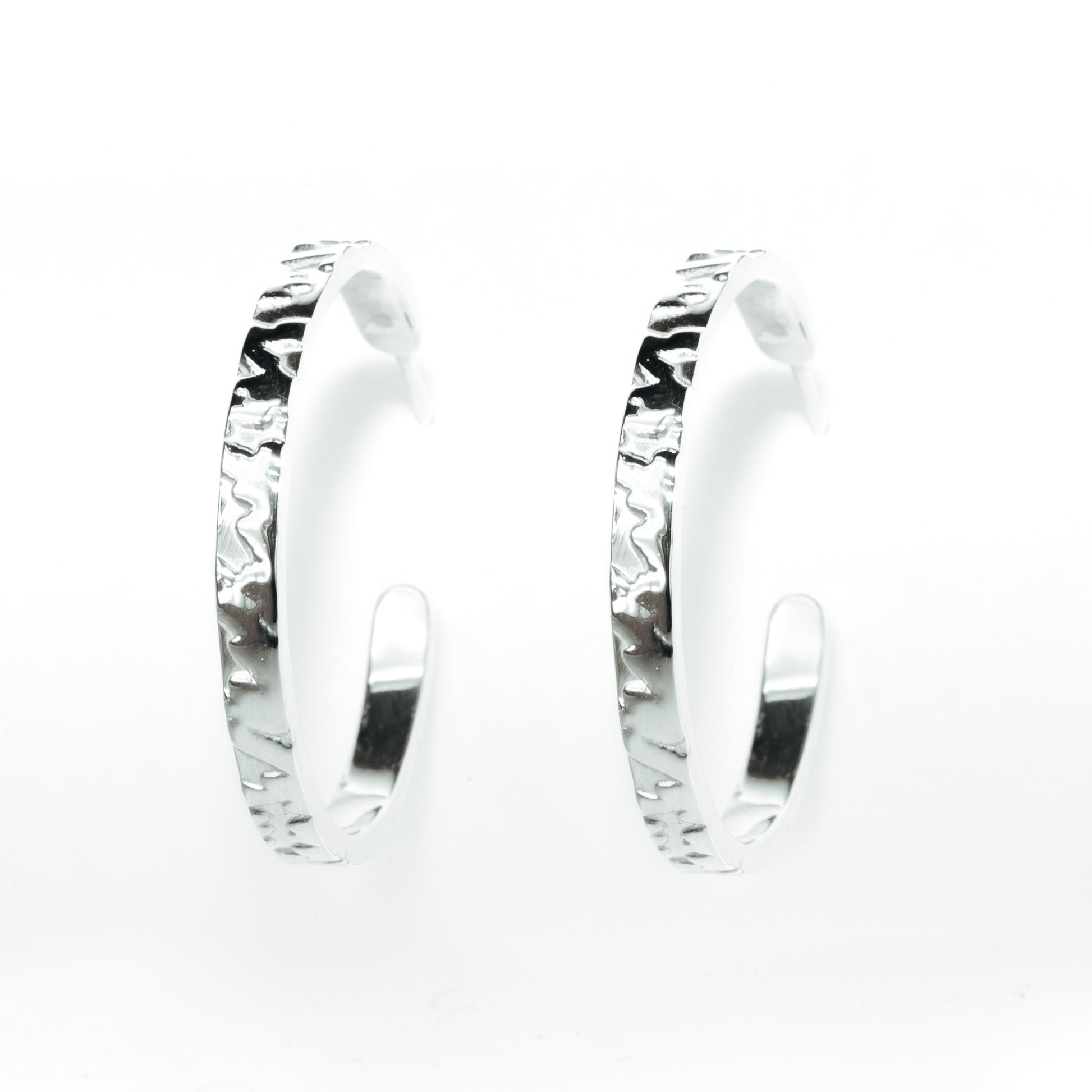 The Wolf Skin Hoop Earrings reinterpret a classic hoop through texture and material. Crafted from solid 925 silver, the surface carries a leather-inspired impression that adds tactility without overpowering the clean circular form. Balanced in weight and handmade in our UK workshop, these hoops are designed to move naturally and elevate everyday wear.
